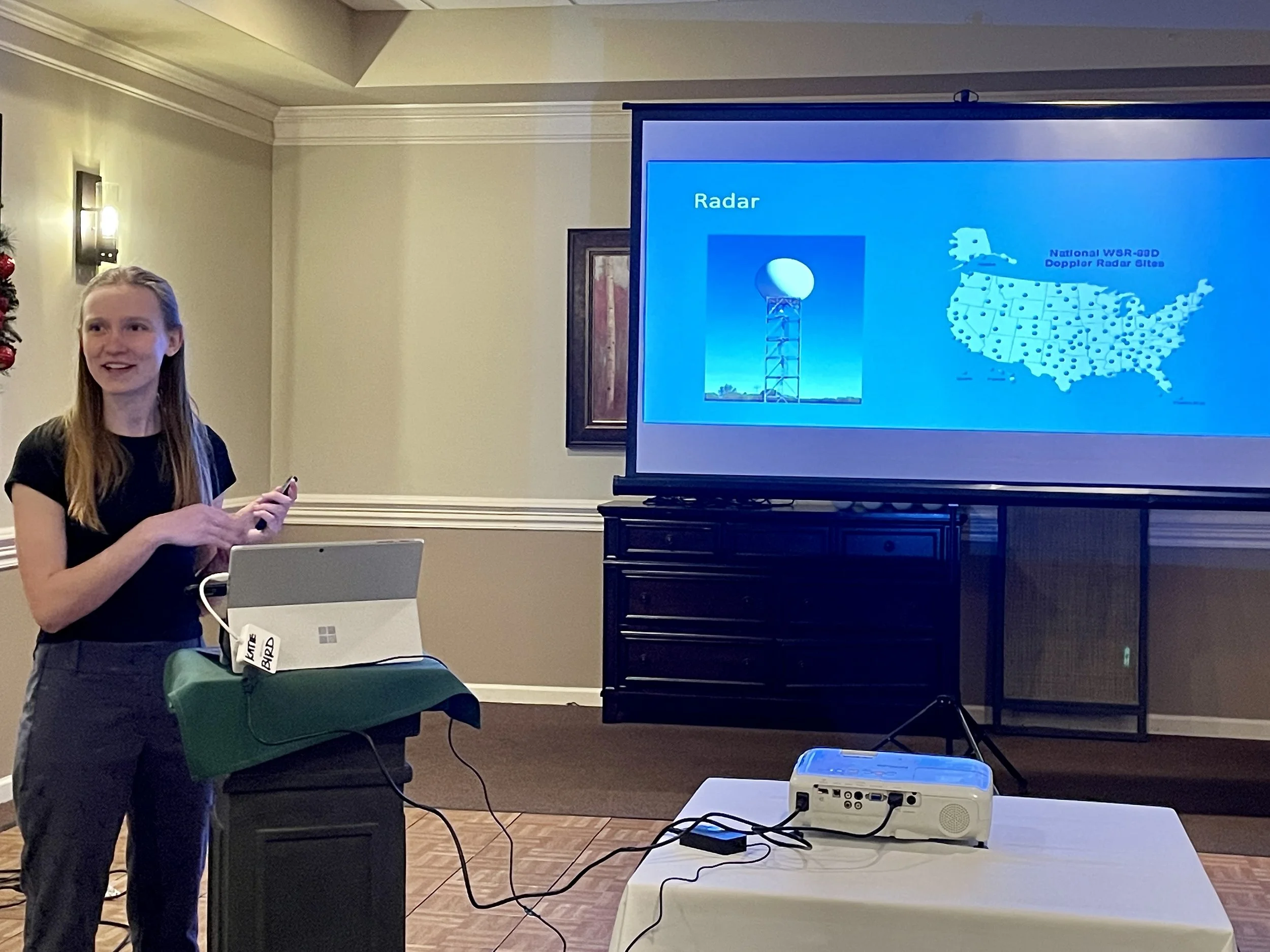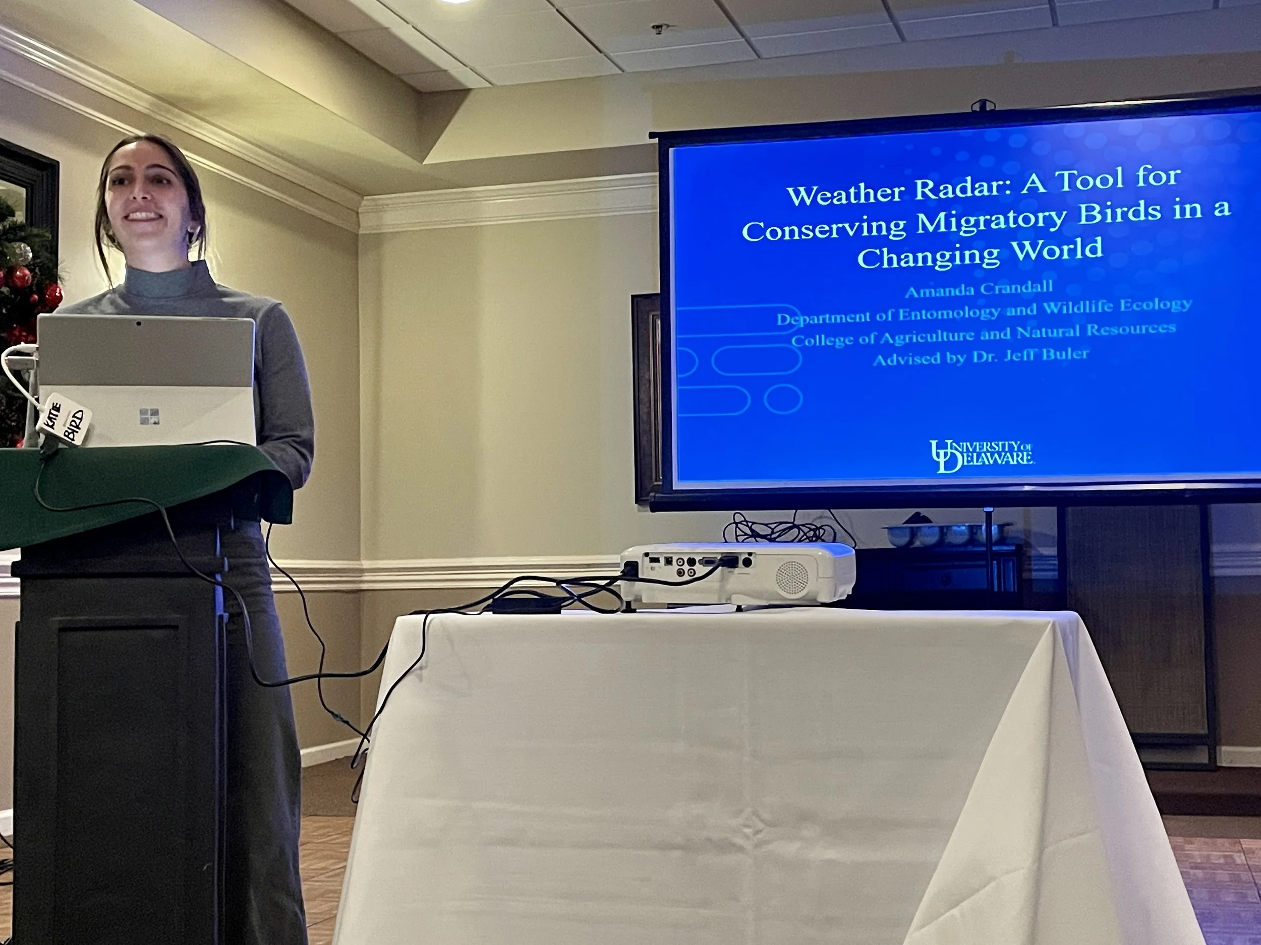 Two University of Delaware graduate students, Amanda Crandall and Katherine Bird, gave separate presentations about their research, which involves the use of radar and ornithology.