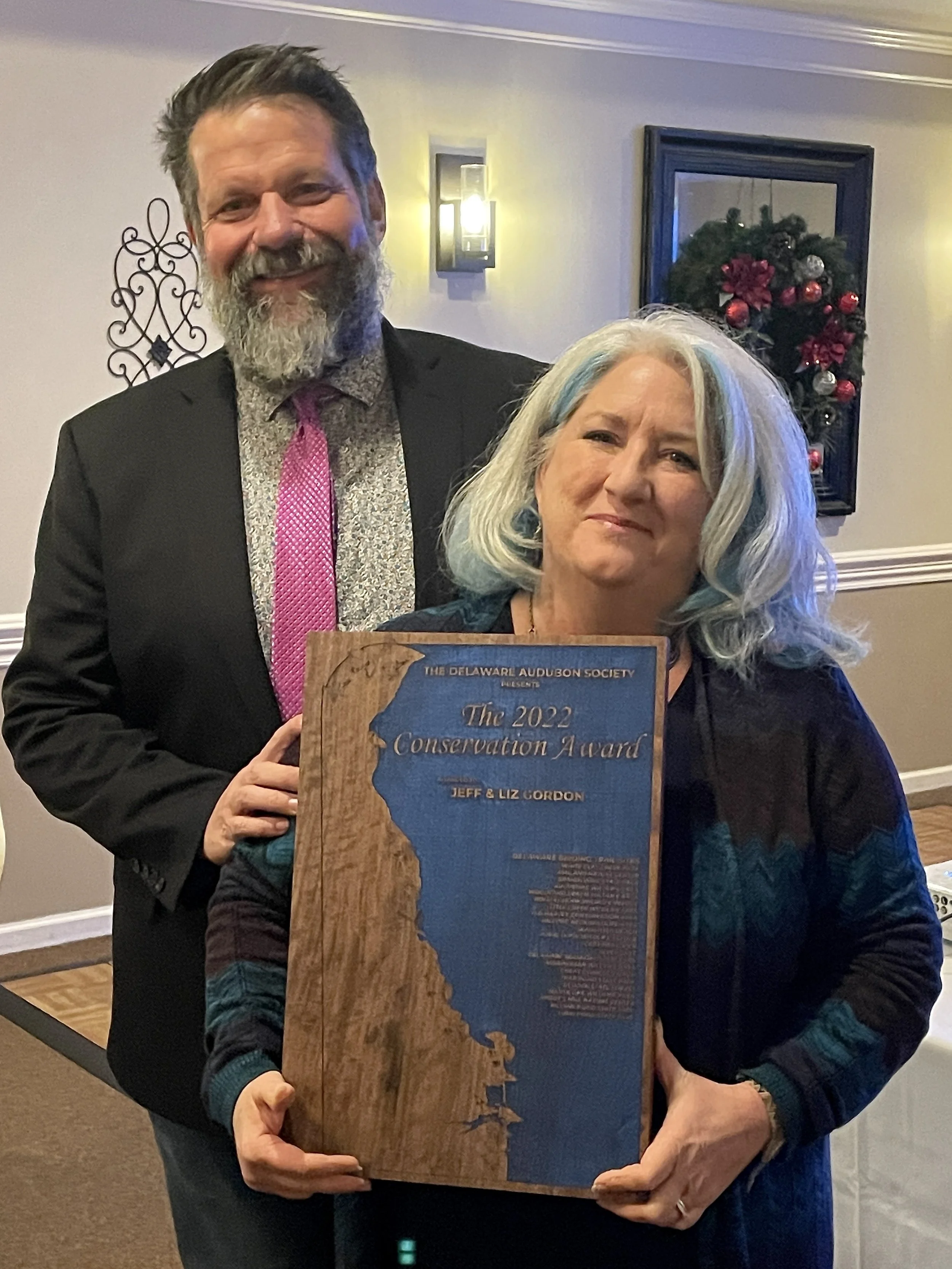 Delaware Audubon Society hosted its annual dinner on Saturday December 10th at Timothy’s in Wilmington and it was a huge success! Jeff and Liz Gordon were presented with Delaware Audubon’s 2022 Conservation Award.